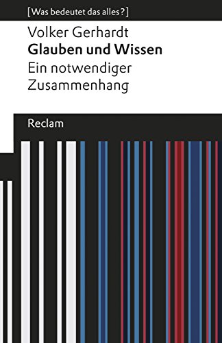 Ist Religion bloß eine reine Glaubensfrage? Und ist Wissen z.B. um Fakten immer verlässlicher? Auf keinen Fall, so Volker Gerhardt: Glauben setzt nämlich Wissen immer voraus. Also kann er nicht der Gegenspieler des Wissens sein: Wissen und Glauben gehören notwendig zusammen, denn sie bedingen sich gegenseitig und haben beide ihren unverzichtbaren Anteil an der Vernunft. Gegenstand von Gerhardts Essay ist die Untersuchung genau dieser Einheit von Glauben und Wissen. Und dies ist in Zeiten religiöser Intoleranz und wissenschaftsgläubiger Überheblichkeit mehr als notwendig.